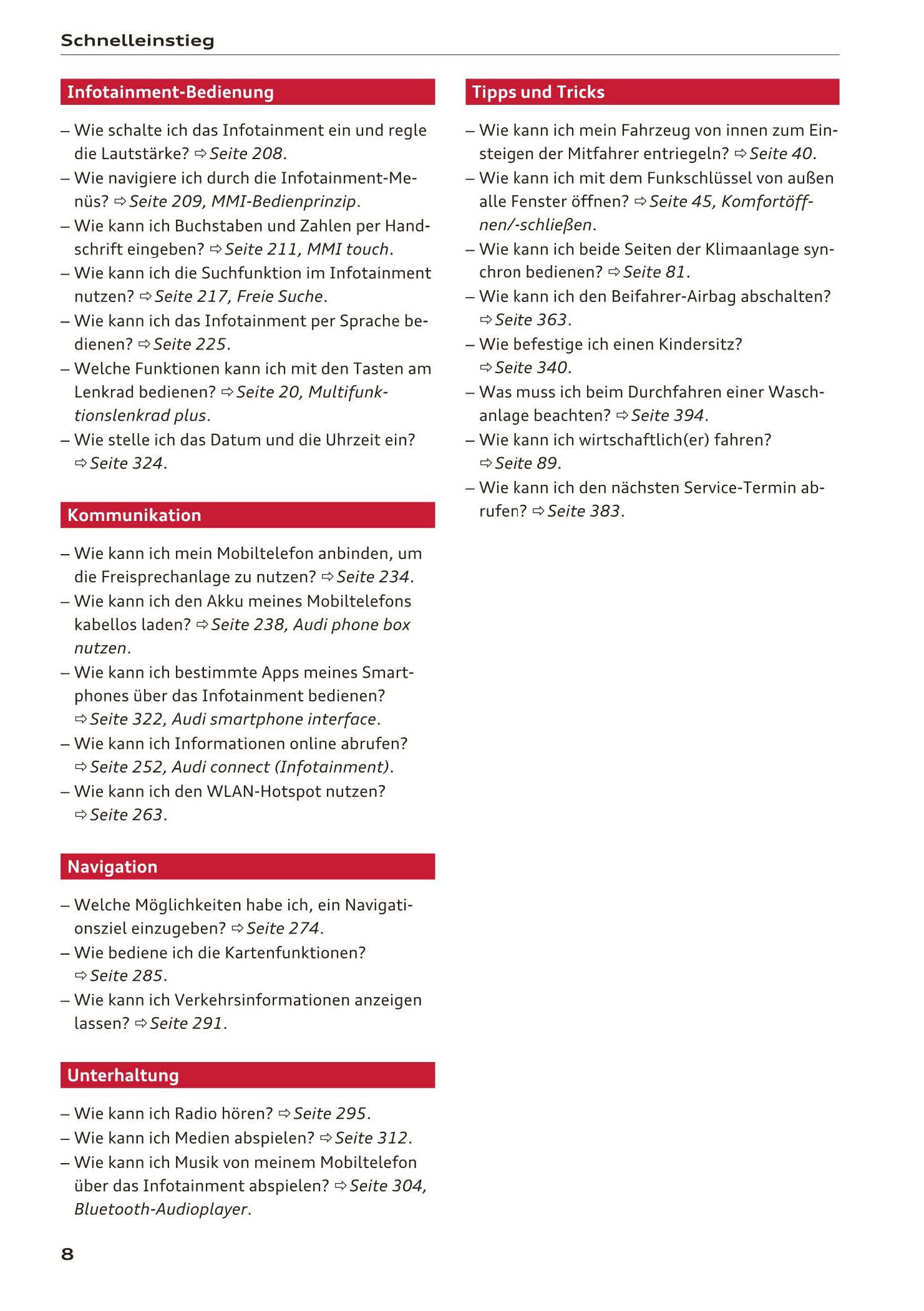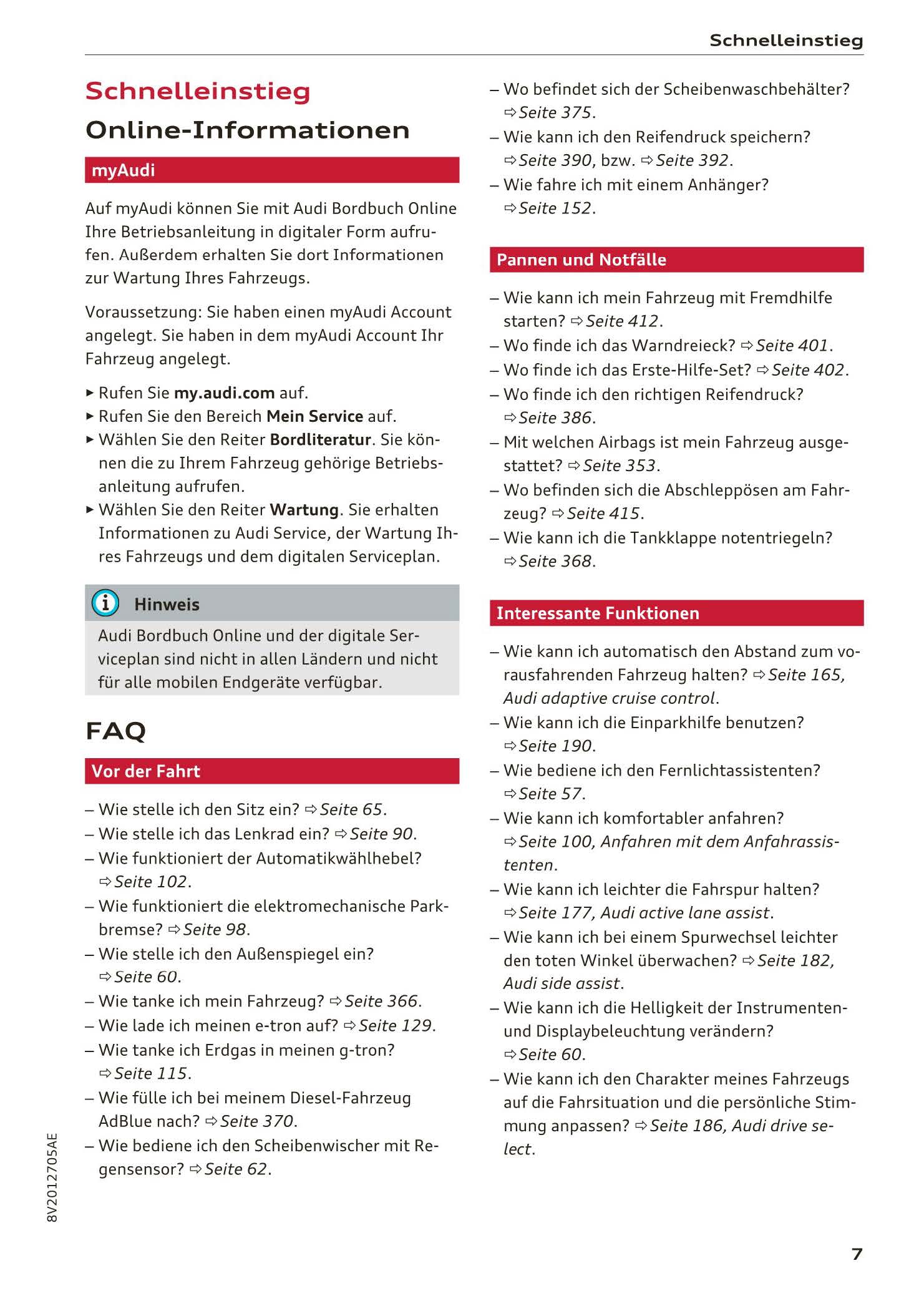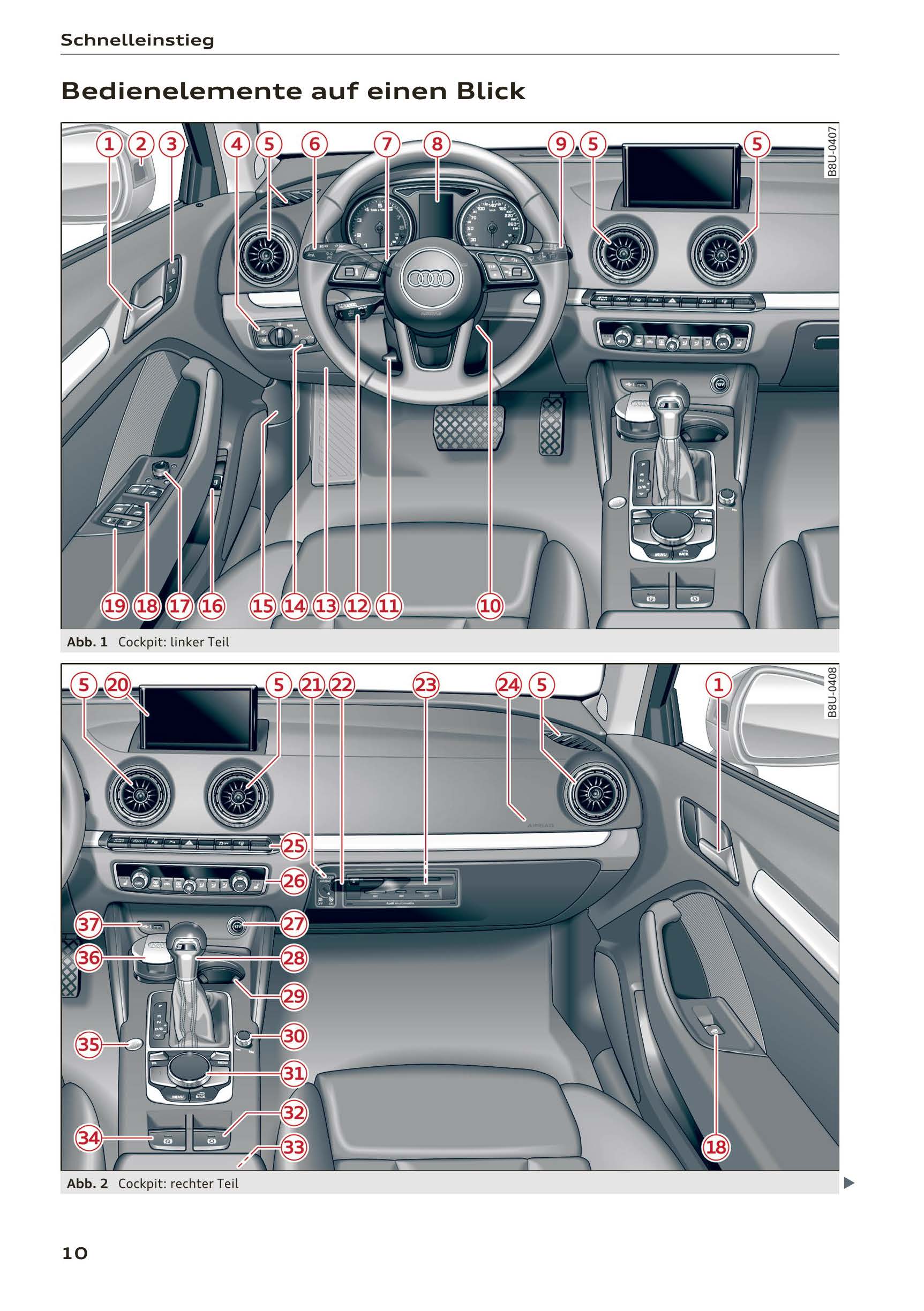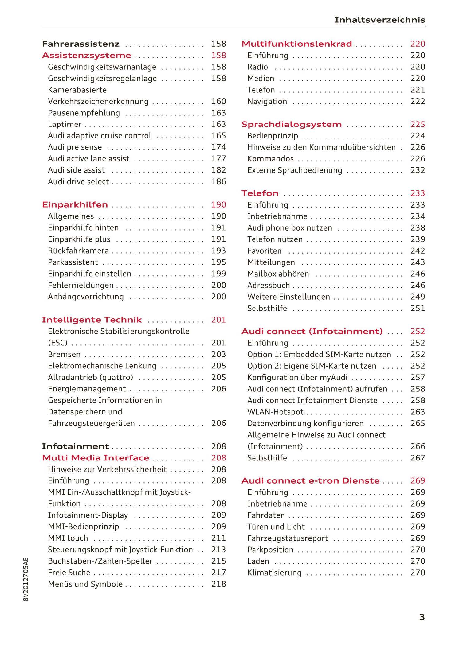 2017-2018 Audi A3/A3 Cabriolet/A3 Limousine/A3 Sportback/A3 Sportback e-tron/A3 Sportback g-tron/RS 3 Limousine/RS 3 Sportback/S3/S3 Cabriolet/S3 Limousine/S3 Sportback Owner's Manual | German