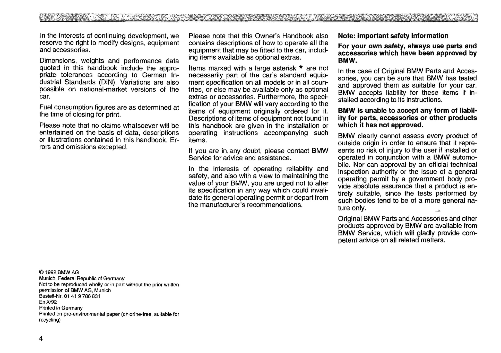 1991 BMW 8 Serie Manuel du propriétaire | Anglais