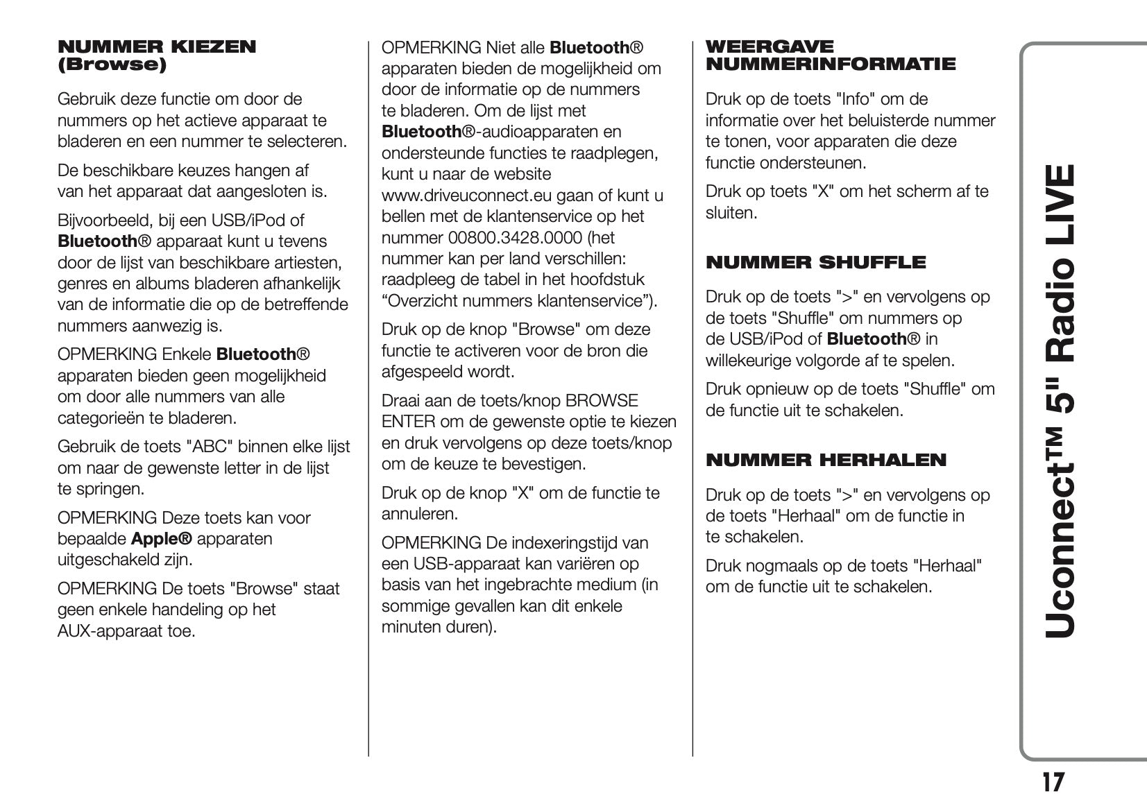 2017-2018 Abarth 500/595/695 Uconnect 5.0 Radio Handleiding | Nederlands