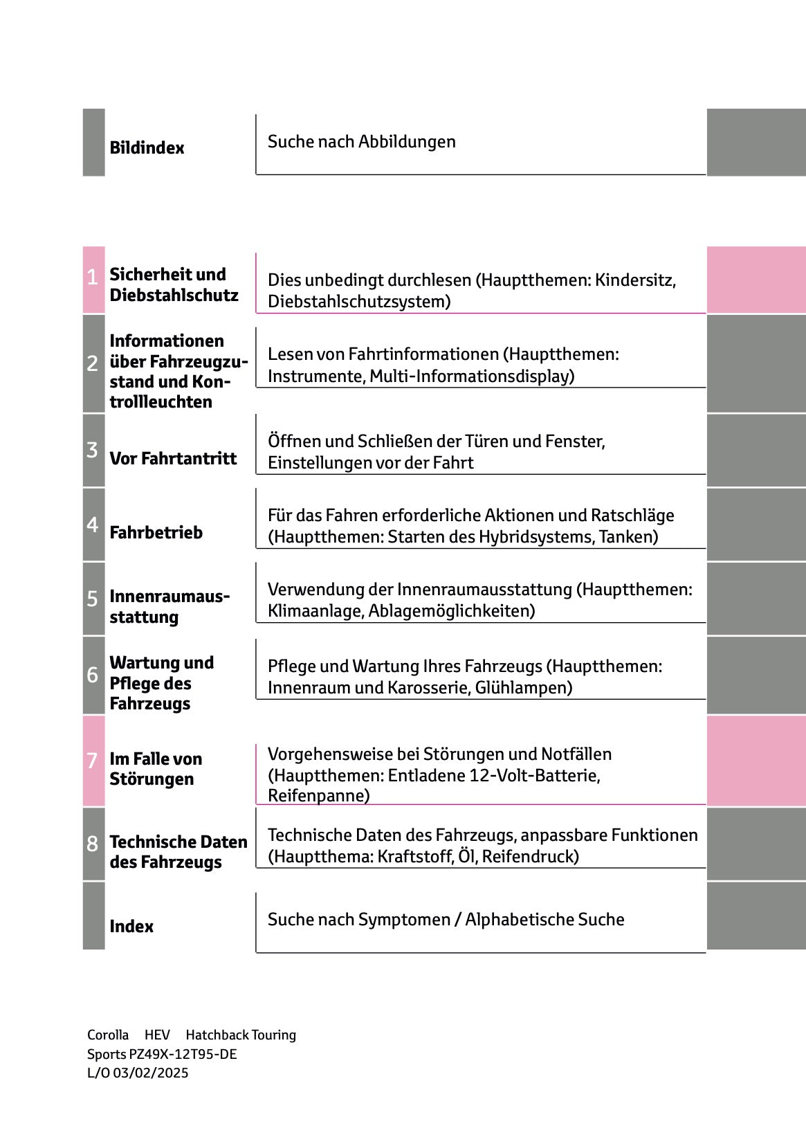 2025 Toyota Corolla Hybrid Hatchback/Touring Sports Owner's Manual | German
