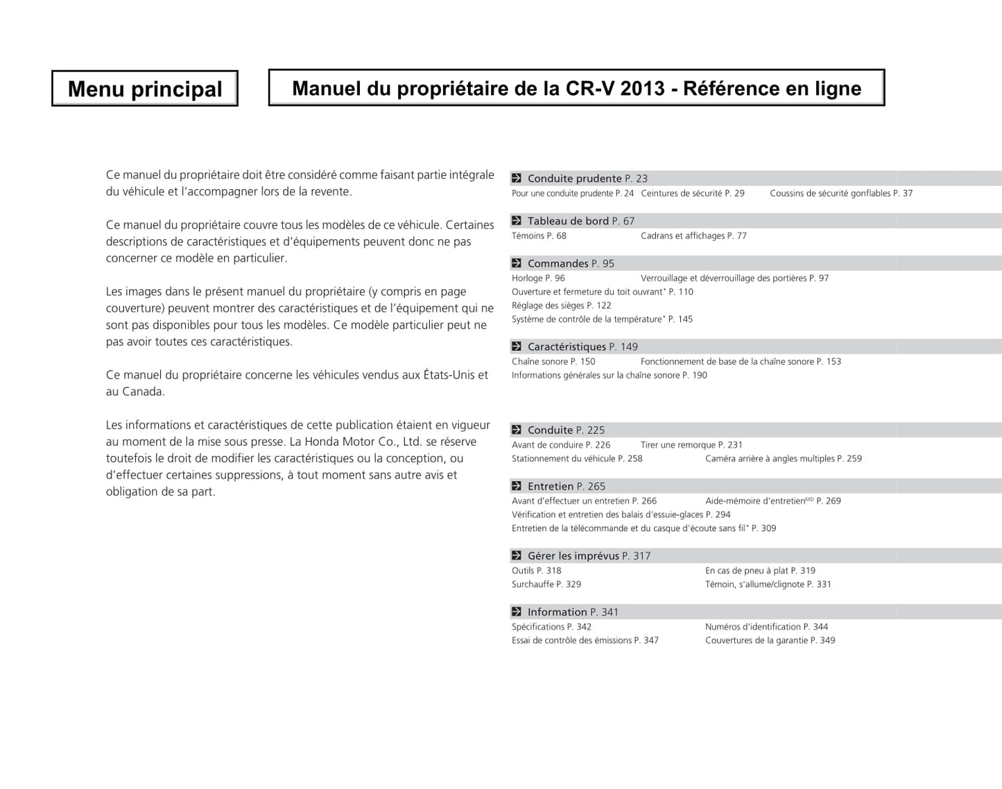 2013 Honda CR-V Gebruikershandleiding | Frans