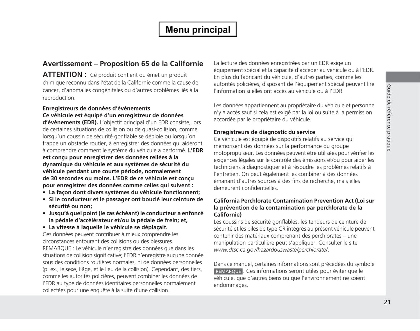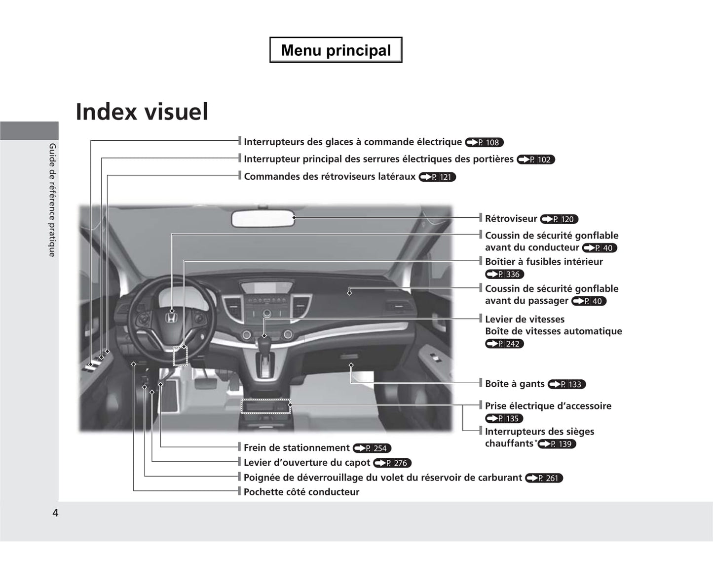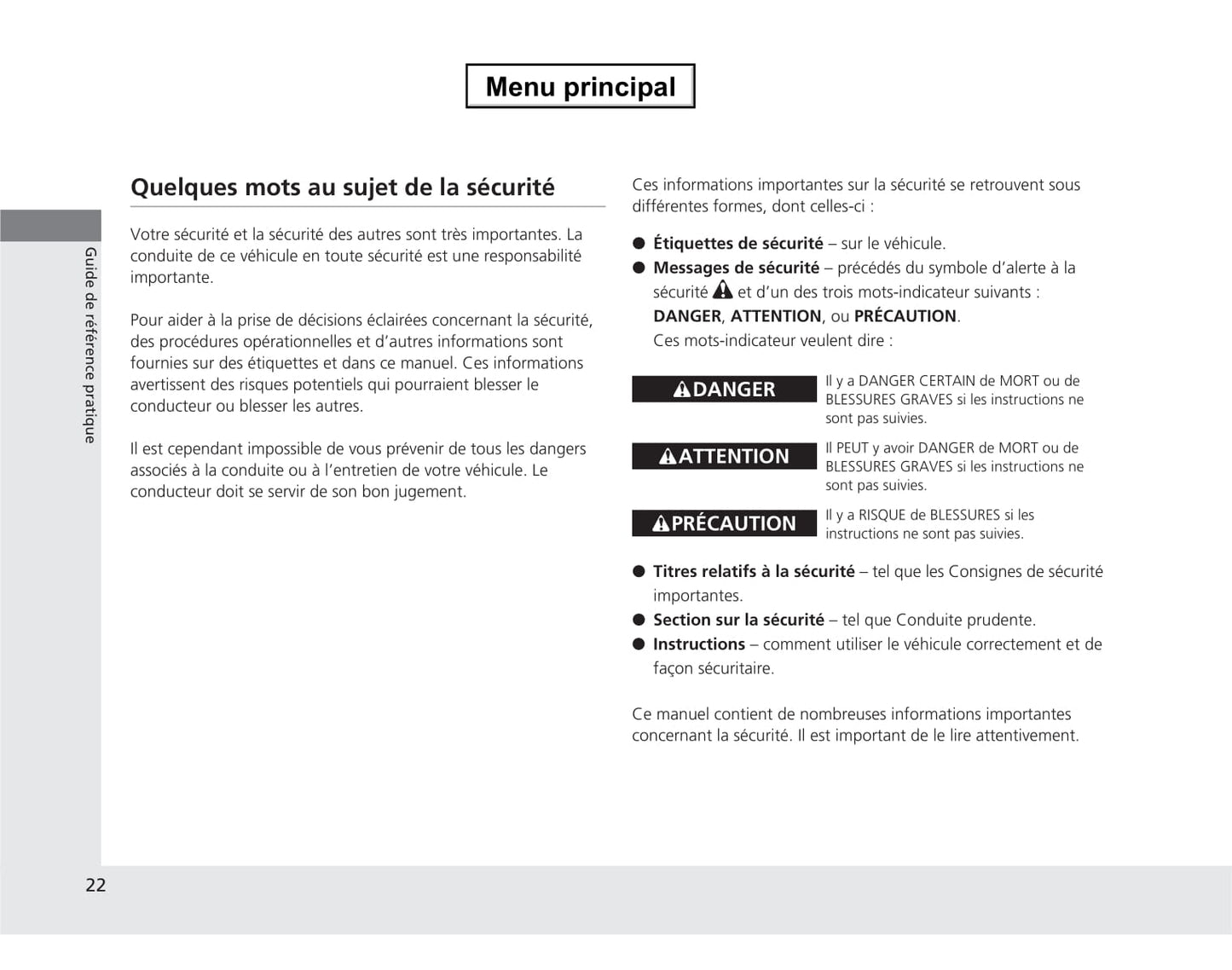 Deze 362-pagina's tellende Franstalige autohandleiding, op aanvraag gedrukt, biedt uitgebreide instructies voor uw Honda CR-V-voertuig.