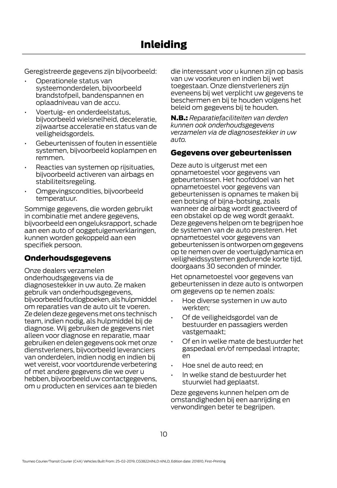 2019-2020 Ford Tourneo Courier / Transit Courier Gebruikershandleiding | Nederlands