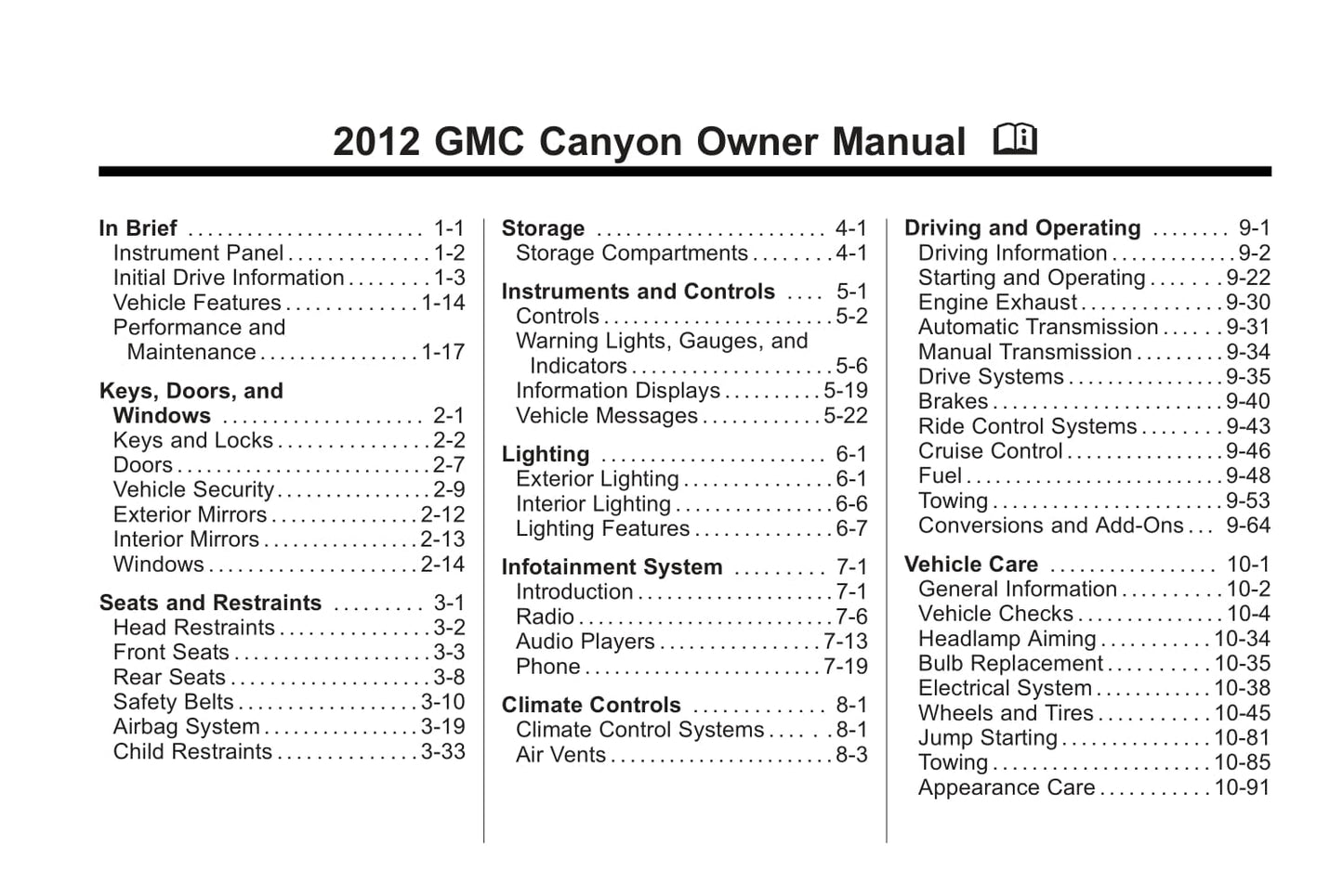 2012 GMC Canyon Gebruikershandleiding | Engels
