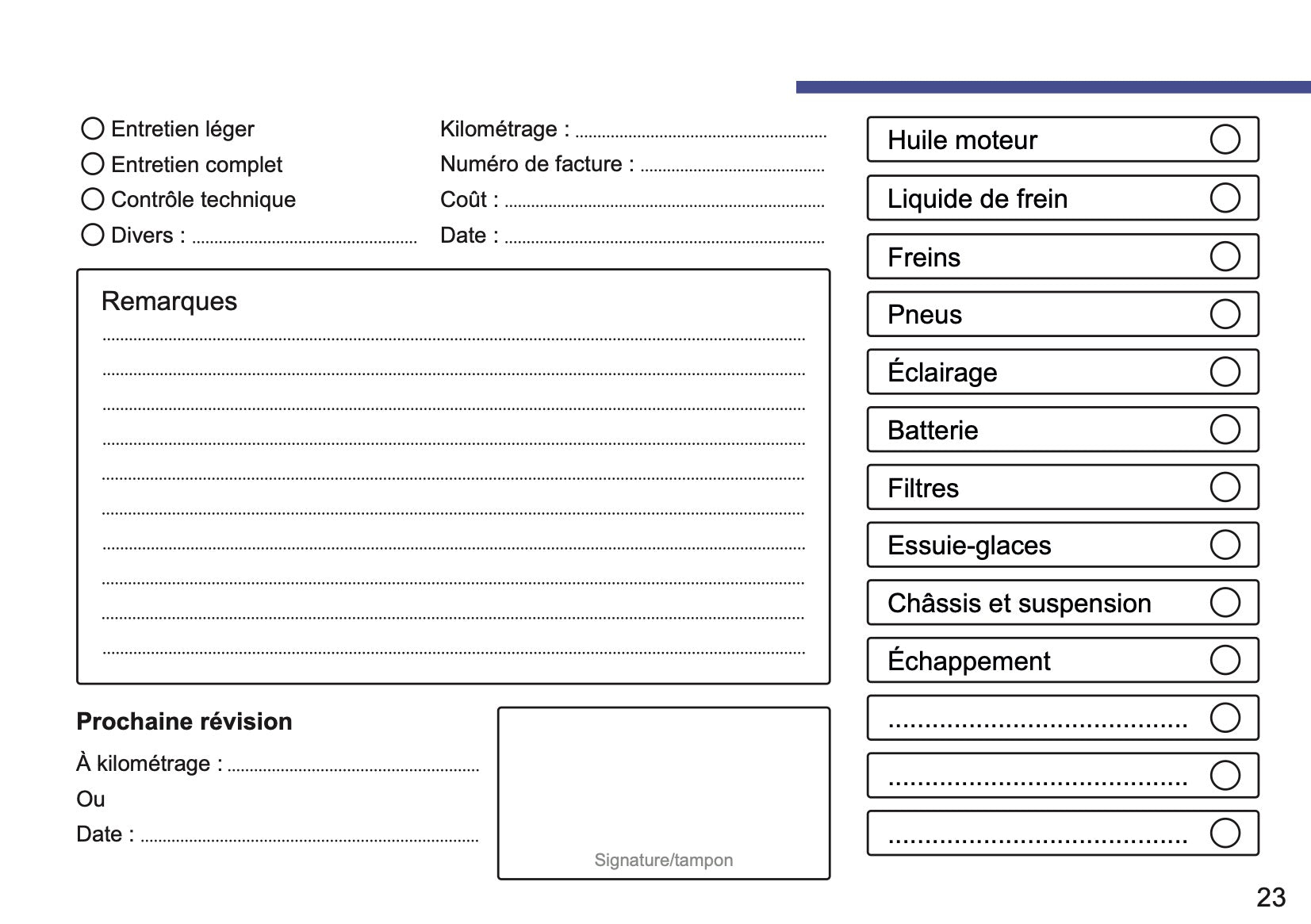 Lexus Maintenance Book | French